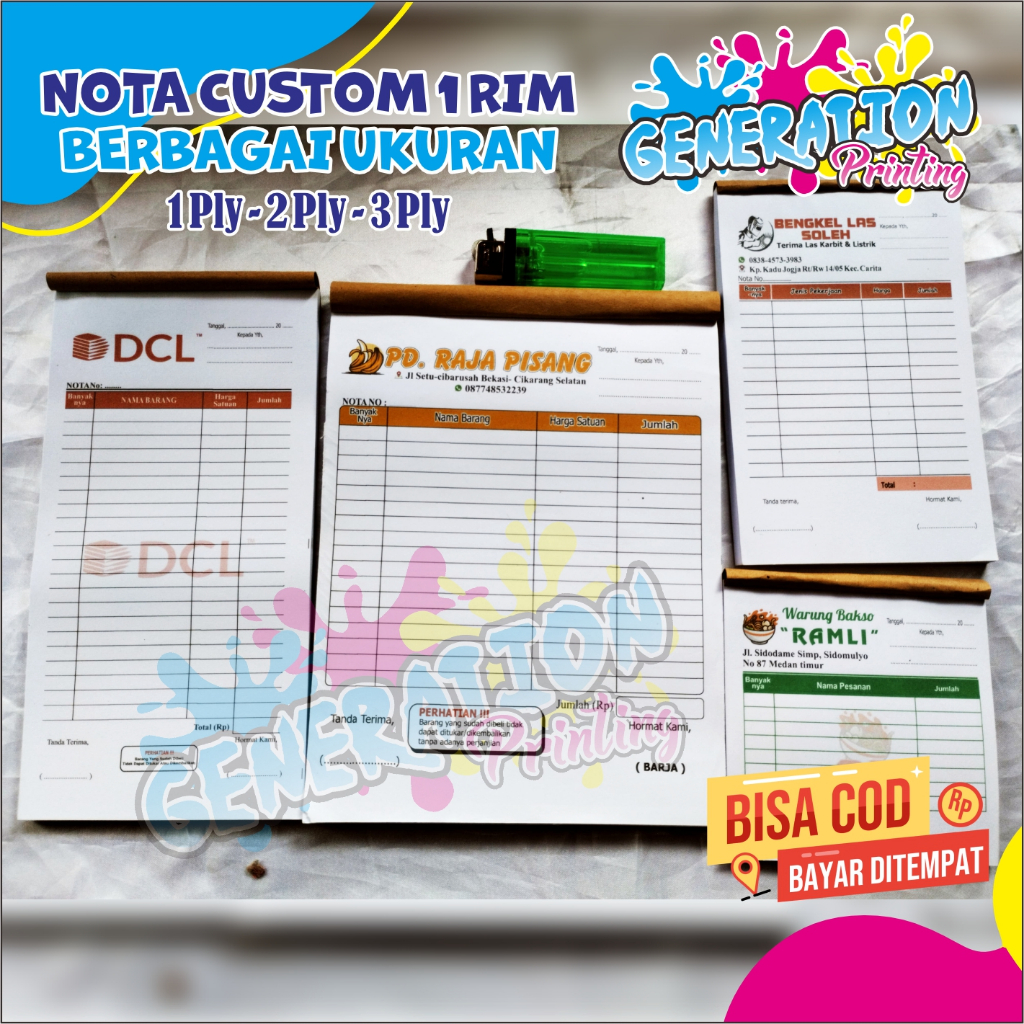 NOTA BON CUSTOM 1 RIM DESAIN SENDIRI BERBAGAI USAHA BISA PILIH RANGKAPAN ( 1PLY 2PLY 3PLY 4PLY )