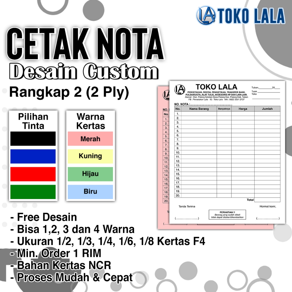 PEMBUATAN NOTA CUSTOM TOKO, RUMAH MAKAN, WARUNG DAN LAIN-LAIN.