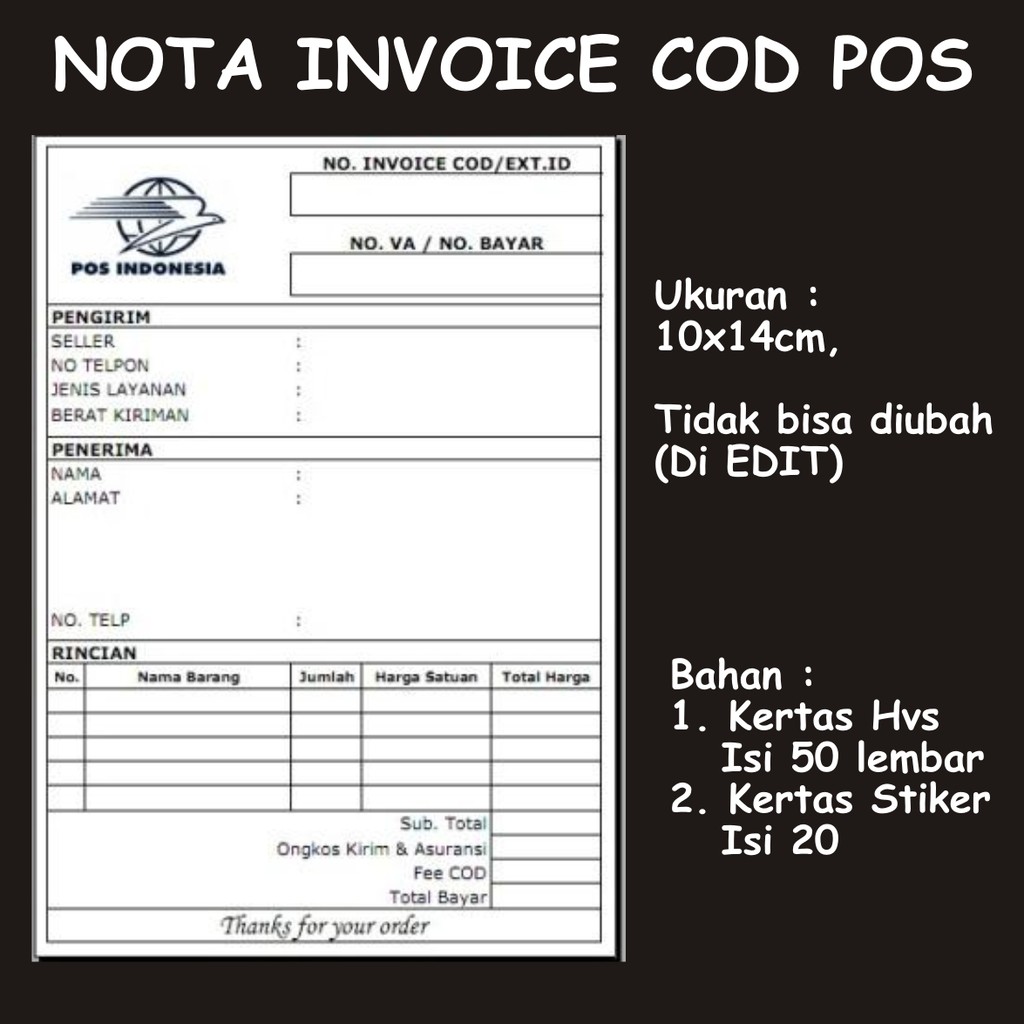 NOTA INVOICE COD POS/LABEL PENGIRIMAN COD POS/KERTAS ALAMAT/Label Nota Invoice COD POS