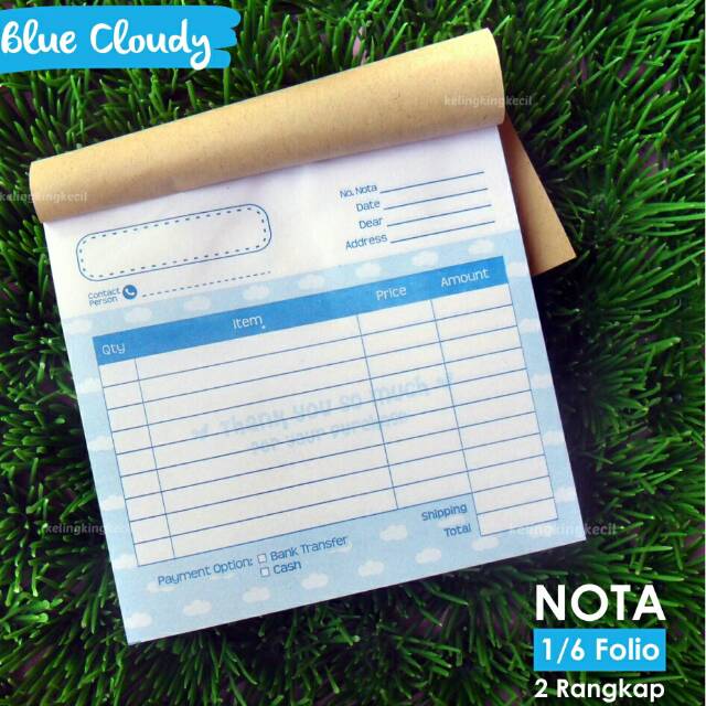 Nota desain khusus. Cantik. Ukuran 1/6 folio. 1 warna. Macam-macam desain yg nggak pasaran. Original. Bisa naikin brand bisnismu.