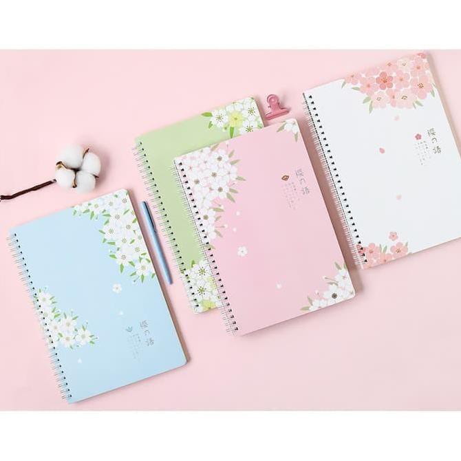 Mekar bunga sakura bisa kamu jumpai pada sampul buku The Langauge of Sakura. Buku catatan bertema Sakura ini hadir dengan 2 ukuran yang berbeda. Hadir dengan warna kalem membuat kamu lebih tenang dalam menulis. Isi kertas bergaris dan berjilid spiral cocok untuk digunakan sehari-hari.