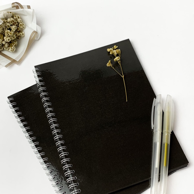 NOTEBOOK SCRAPBOOK BLACK PAPER A5 SPIRAL
