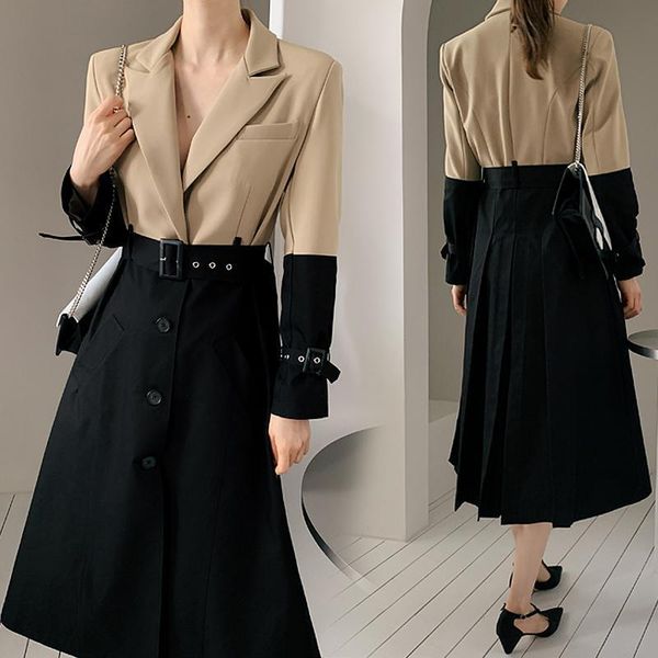 women's trench coats z-zoux women coat patchwork long sleeve temperament windbreaker single breasted belt female overcoat retro 2021, Tan;black