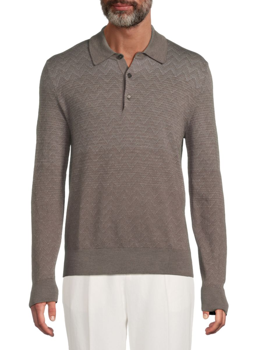 Рубашка-поло с длинным рукавом и тональным шевронным принтом Missoni, серый