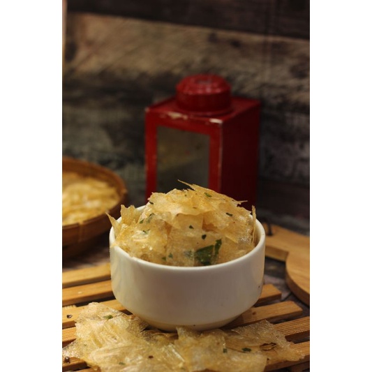 Keripik yg memiliki penampilan unik seperti serpihan beling kaca ini memiliki citarasa yg enak, asin, gurih, pedas dan tekstur keripik yg sangat renyah cocok banget dijadikan teman ngemil yg pas dirumah saat santai bersama keluarga