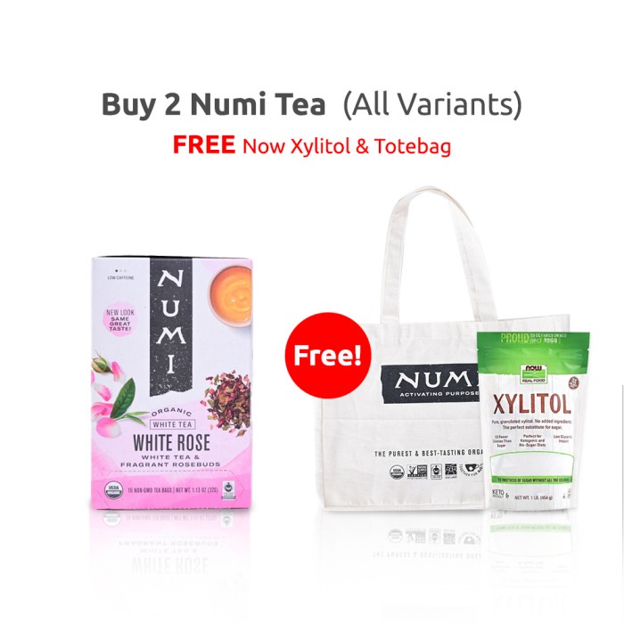 Numi Organic White Rose Tea merupakan teh organik dari campuran White Tea dengan bunga mawar. Teh rendah kafein ini memiliki aroma yang manis dan harum dengan rasa yang lembut.