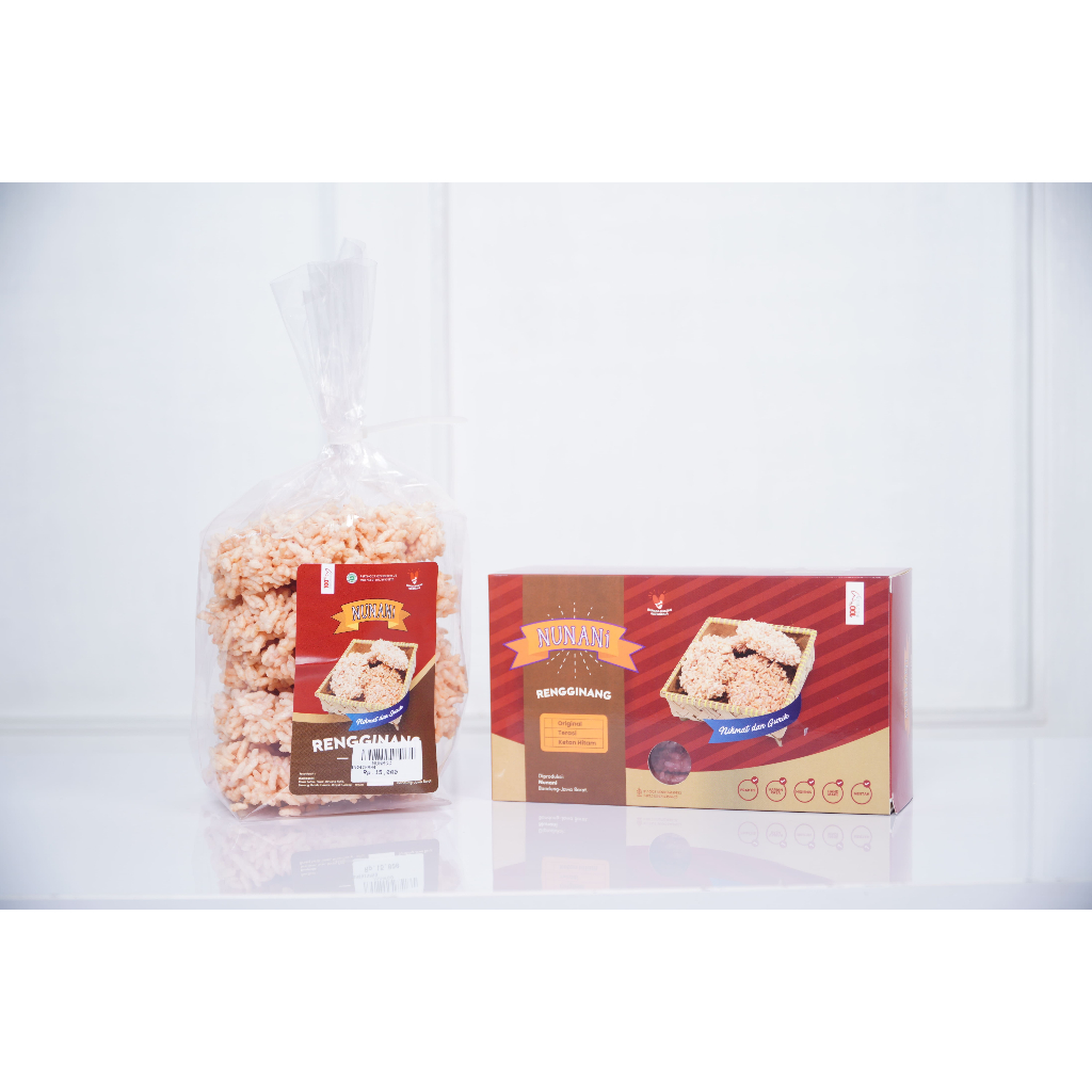 RENGGINANG NUNANI ADALAH SEJENIS KERUPUK TEBAL YANG TERBUAT DARI BERAS KETAN YANG DIBENTUK BULAT DAN DIKERINGKAN DENGAN CARA DIJEMUR DIBAWAH PANAS MATAHRI, LALU DIGORENG PANAS DALAM MINYAK GORENG. AGAK BERBEDA DARI JENIS KERUPUK LAIN YANG UMUMNYA TERBUAT DARI ADONAN BAHAN YANG DIHALUSKAN SEPERTI TEPUNG TAPIOKA ATAU TUMBUKAN BIJI MELINJO, RENGGINANG TIDAK DIHANCURKAN SEHINGGA BENTUK BUTIRAN KETANNYA MASIH TAMPAK. KINI RENGGINANG NUNANI HADIR DALAM KEMASAN DUS, SEHINNGA PENIKMAT RENGGINANG AKAN MENDAPATKAN KEMUDAHAN DALAM MENGGORENG KAPANPUN DAN DIMANAPUN.