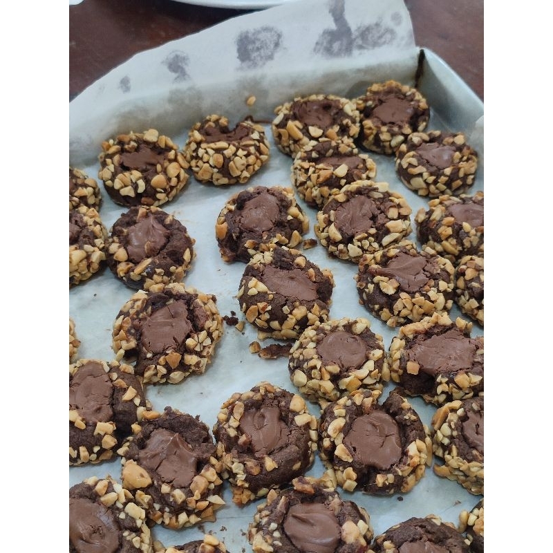 Kue kering coklat yang diberi saus nutella dibagian atas, serta diberi baluran kacang tanah yang tentunya sangat legit dan cocok di hidangkan untuk acara keluarga ataupun untuk camilan sehari hari, tanpa bahan pengawet.
