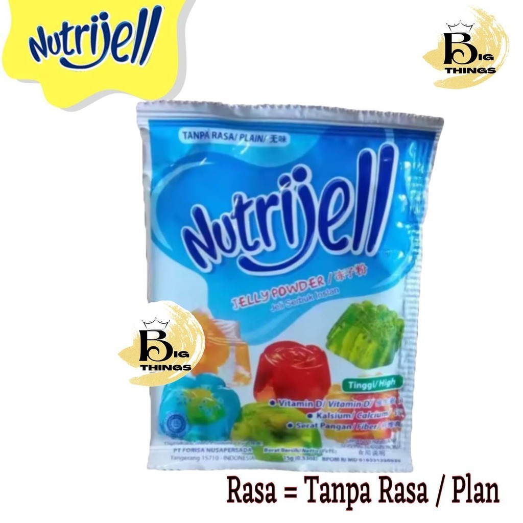 AGAR AGAR JELLY POWDER EKONOMIS NUTRIJELL PLAIN TANPA RASA dengan warna bening tersedia dengan ukuran 10gr