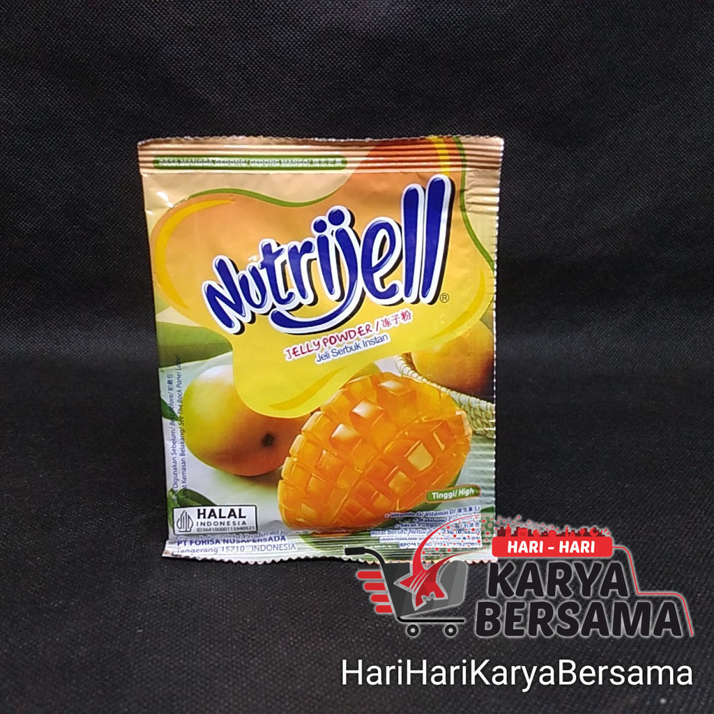 Nutrijell mangga gedong merupakan jeli serbuk yang dibuat dengan rumput laut dan buah mangga pilihan. Nutrijell menjadi makanan tinggi serat yang baik untuk pencernaan Anda. Selain itu, Nutrijell juga tinggi akan Vitamin D dan Kalsium yang baik untuk tubuh. Tekstur kenyal yang dimiliki Nutrijell membuat makanan tersebut mudah untuk dikonsumsi.