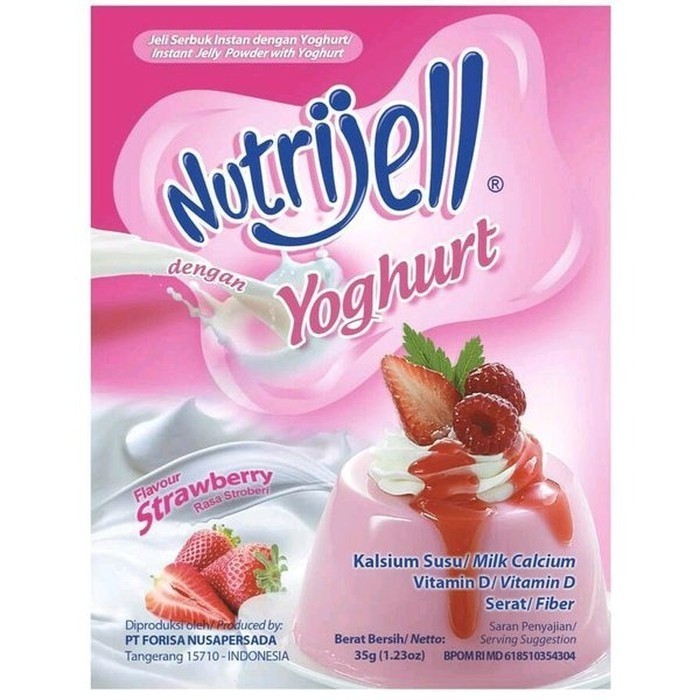 Nutrijell Yoghurt merupakan makanan berupa gel yang dikemas dalam bentuk bubuk instan.Nutrijell terbuat dari bahan alami bubuk konyaku dan karagenan,bahan ini sangat baik untuk kesehatan pencernaan karena mengandung banyak serat.Nutrijell sangat tepat dimakan kapan saja dan di mana saja.