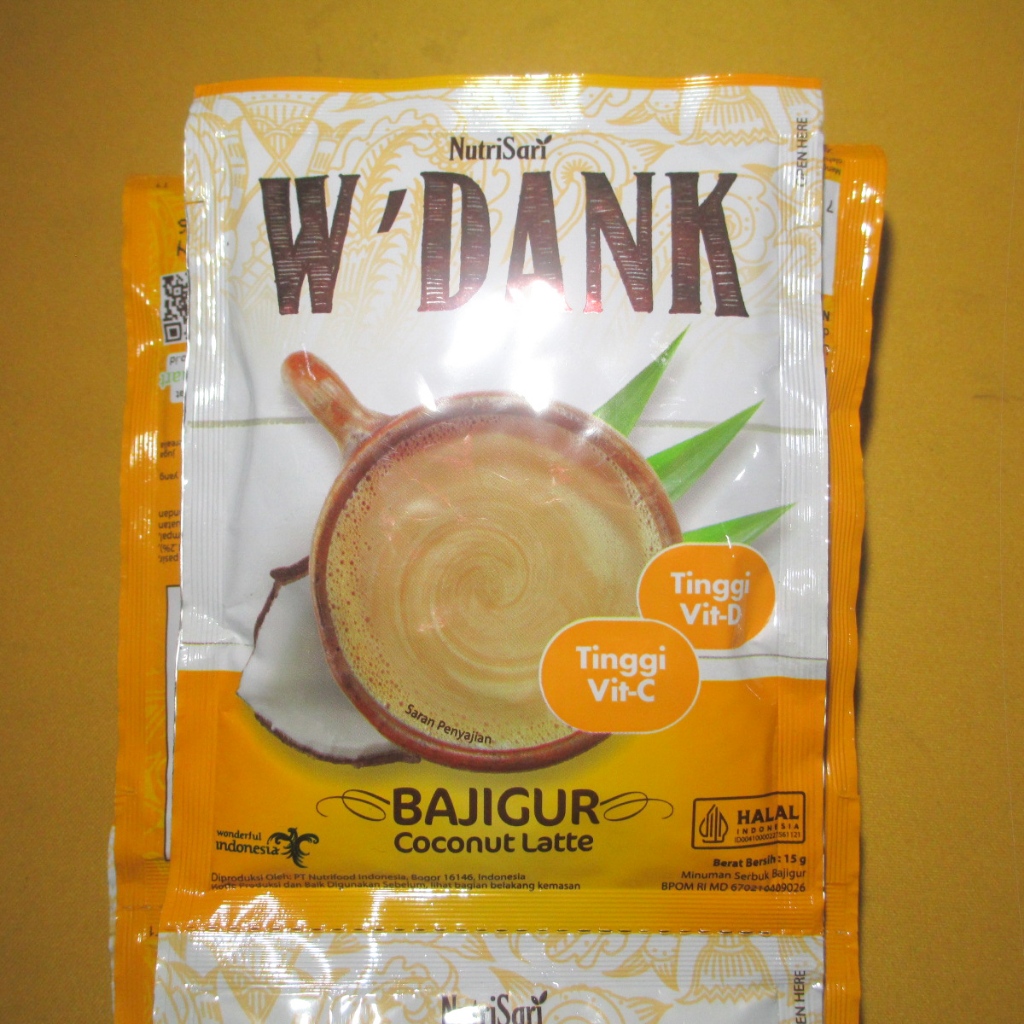 Nutrisari W'dank Bajigur Coconut Latte adalah minuman hangat yang mengandung vitamin C dan vitamin D yang penting untuk tubuh.
