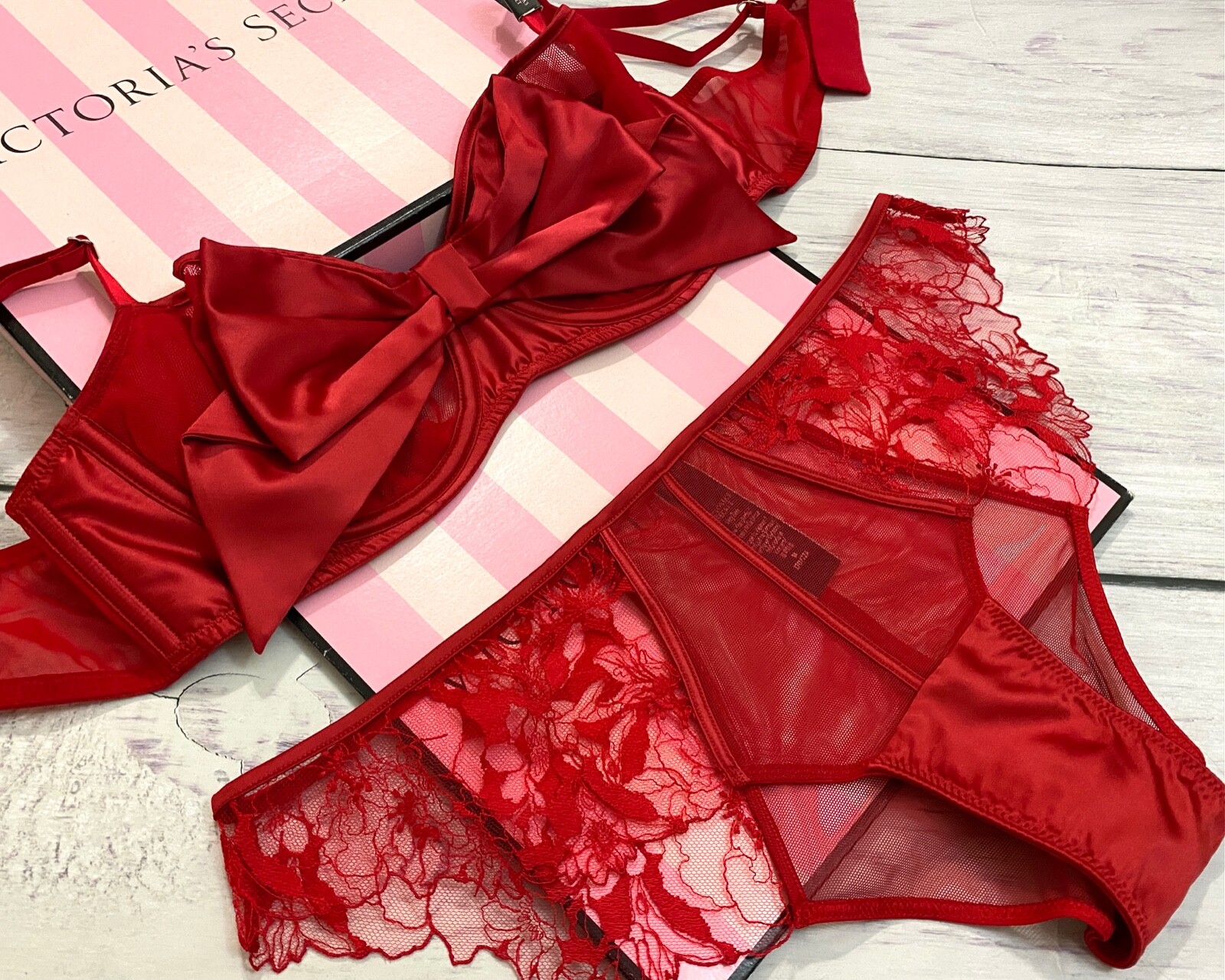 NWT Victorias Secret DREAM ANGELS Атласный бюстгальтер-балконет без подкладки с бантом, Красный