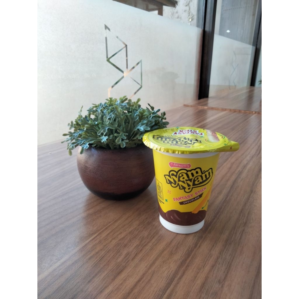 Nyam-Nyam Fantasy Stick Chocolate merupakan cemilan stik yang mudah untuk di nikmati dengan cita rasa unik dan dipadukan dengan saus cokelat yang membuat anda semakin ketagihan.