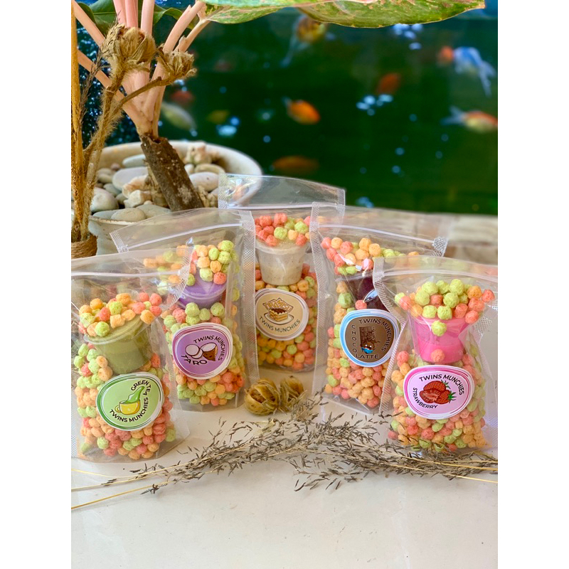 Nyam nyam rice crispy kemasan pouch yang crunchy dengan saus dip glaze aneka rasa ( coklat, strawberry, taro, green tea, tiramisu) yang di sukai semua kalangan terutama anak anak