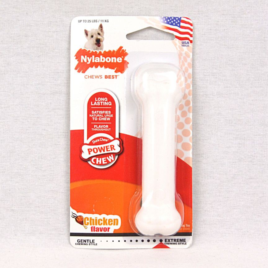 DescriptionPowerful chompers have finally met their match with the Nylabone DuraChewChicken Flavored Textured Bone Dog Toys. Designed to hold up to tough chewers,these chew toys give bored dogs something to sink their teeth into, with anoption of textures that are both great for dental health—offering two convenientchoices in one tasty package. The chews feature bristles that actually raiseduring chewing, which helps clean teeth while controlling plaque and tartarbuildup. Plus, it's made in the USA!Key Benefits * Long-lasting non-edible dog toys made to occupy powerful chewers to prevent destructive chewing. * Extreme chewing style keeps dogs busy, happy, and satisfied with a savory chicken flavor throughout. * Includes one multi-textured option and one smooth option for enticing variety. * Inspired by nature, they are made in the USA with tough, durable nylon and recommended by veterinarians. * Satisfies their natural instinct to chew and promotes dental health by cleaning teeth.Every dog plays differently and, since not all toys are created equal, it’salways best to keep a close watch on your pup in case things get ruff.Supervised play will help toys last longer and most importantly keep your palsafe. No dog toy is truly indestructible, so always remove the toy from playtimeif pieces begin to break off.