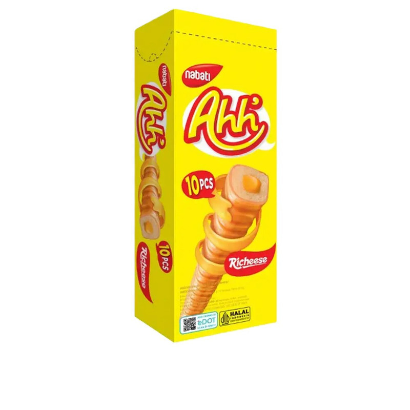 Nabati Ahh Richeese 30g adalah camilan berbentuk biskuit ekstrudat jagung yang renyah dan dilapisi krim keju Richeese yang lezat.