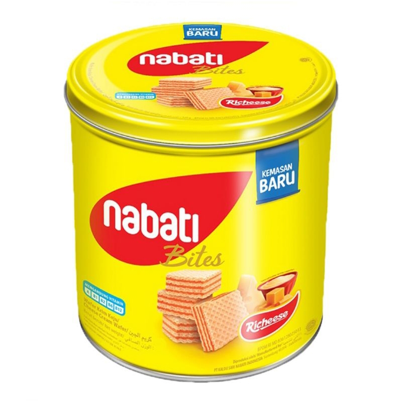 nabati Bites Richeese Wafer Keju Kaleng 287 g merupakan wafer krim keju yang terbuat dari kombinasi keju asli dan bahan-bahan pilihan berkualitas untuk menghasilkan wafer renyah dengan rasa yang istimewa. Richeese nabati terdiri dari kombinasi wafer krispi dan krim keju premium di setiap lapisnya, memberikan Anda sensasi makan keju yang tak terlupakan. Tak hanya itu, wafer nabati ini juga mengandung vitamin A, B1, B2, B6, B12 yang dibutuhkan oleh tubuh, menjadikannya snack lezat yang kaya gizi.