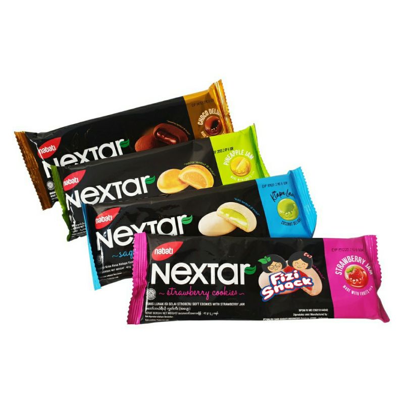 Produksi PT. Kaldu Nabati Sari - Bandung, perusahaan multi konsumen produk yg merajai pasar lokal khususnya jawa barat hingga terkenal se nusantara. Nabati sebenarnya sudah sangat merambah lini jualan yg beragam. Mulai dari snack yg utama hingga konsorsium pemilik brand snack sarat penghargaan bergensi nasional hingga jaringan resto. Dan salah satu produk yg mereka punya adalah Nextar. Brand makanan ringan berupa kue nastar lembut dgn berbagai rasa selai didalamnya. Dijual per bungkus isi 3 pcs kue di setiap bungkusnya dengan netto 42gr/bks.