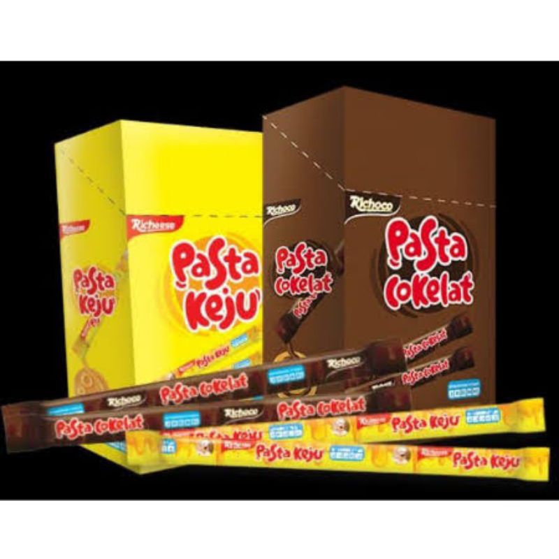 Pasta Nabati Richeese dan Richoco, 30 pcs x 6g, cocok untuk diet caffeine free. Tersedia dalam dua rasa enak: keju dan cokelat, praktis untuk camilan