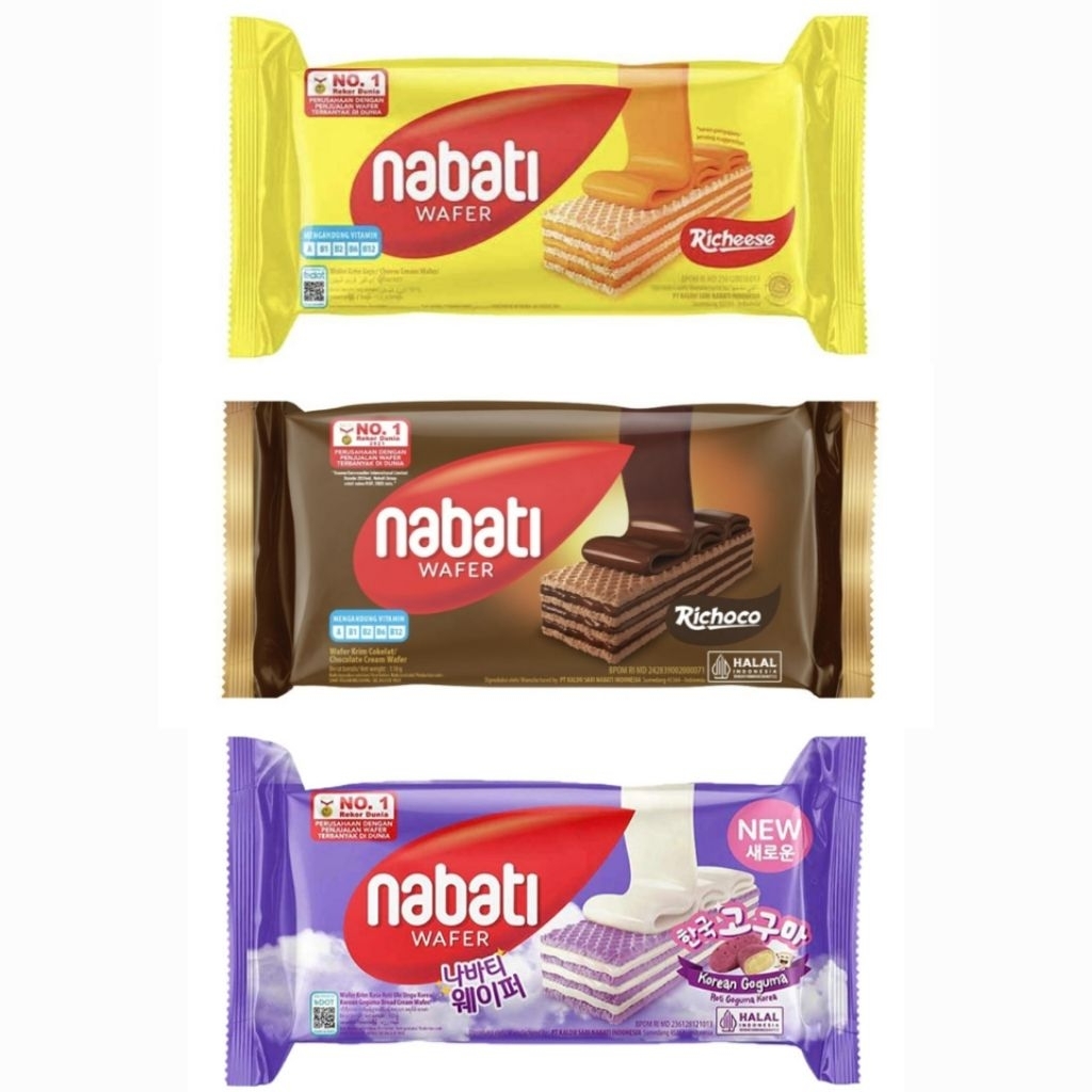 Richeese Wafer merupakan wafer krim yang terbuat dari kombinasi keju asli dan bahan-bahan pilihan berkualitas untuk menghasilkan wafer renyah dengan rasa yang istimewa. Richeese Nabati terdiri dari kombinasi wafer krispi dan krim keju premium di setiap lapisnya, memberikan Anda sensasi makan keju yang tak terlupakan. Tak hanya itu, wafer Richeese Nabati mengandung vitamin A, B1, B2, B6, B12 yang dibutuhkan oleh tubuh, menjadikannya snack lezat yang kaya gizi.