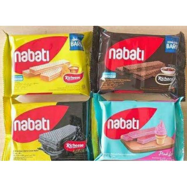 Wafer Nabati 50 gr. Terdapat 4 rasa. Keju, Coklat, Vanilla, Pink Lava.