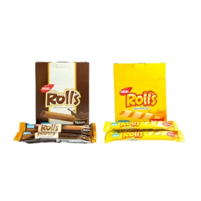 Richeese Rolls Keju dan Coklat merupakan wafer stick yang memiliki bentuk stick roll dan bagian tengahnya terdapat rongga yang diisi dengan krim dari keju dan coklat asli yang mengandung vitamin A, B1, B2, B6 dan B12 yang baik bagi tubuh. Richeese Rolls Keju dan Coklat dapat dinikmati saat bersantai di rumah atau saat bepergian.