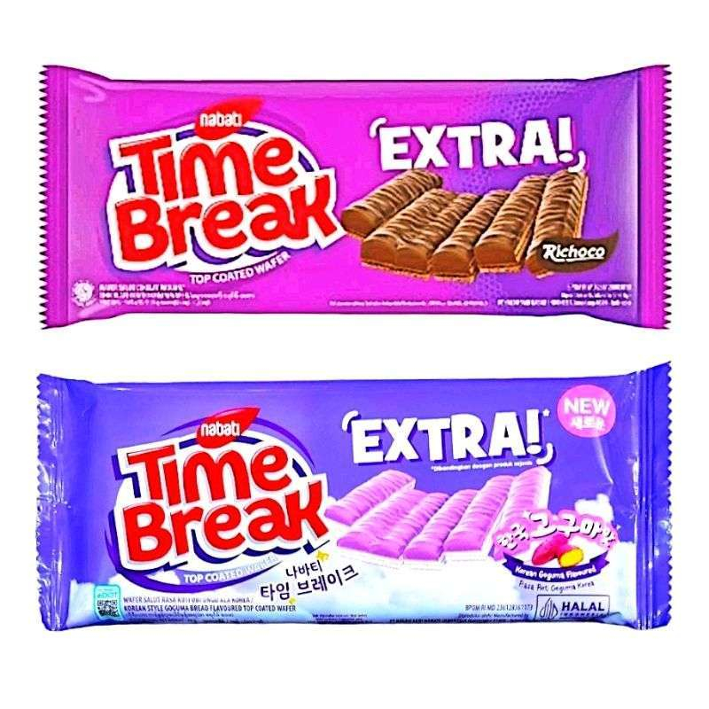 Nabati Time Break adalah wafer renyah dengan salut cokelat , goguma berlimpah di atasnya. Dengan rasa lezat dan tekstur yang memanjakan lidah, wafer ini memberikan energi segar untuk melanjutkan hari