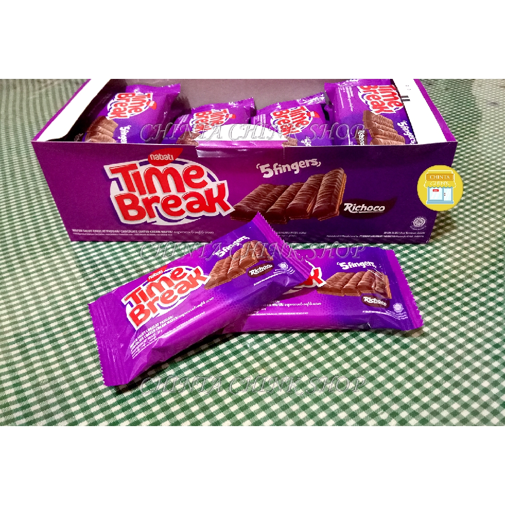 Nabati coklat Time Break didalamnya wafer lembut dan renyah diluar lapisan krim di setiap lapisannya dan berbalut krim coklat yang nikmat.