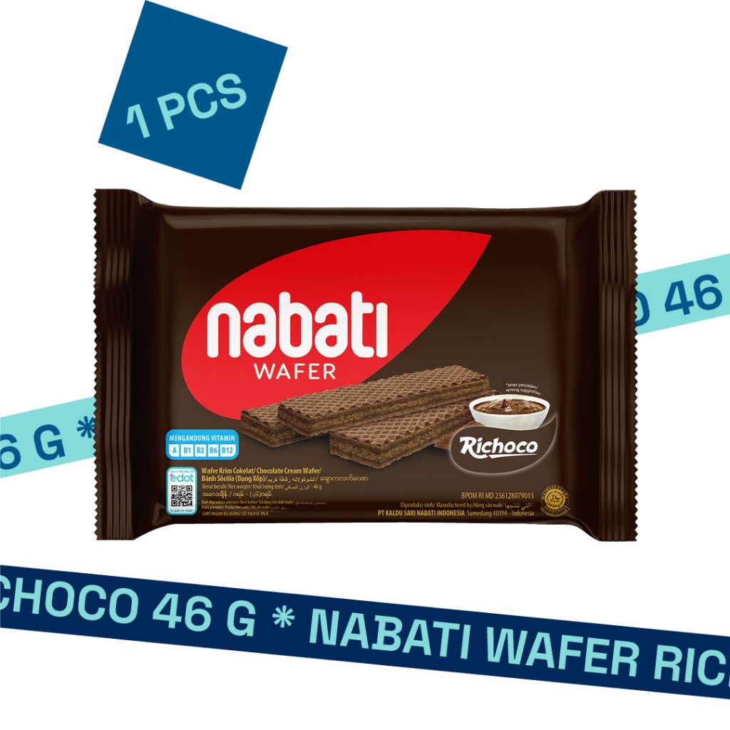 Ini dia! NABATI Wafer Richoco, wafer renyah dengan lapisan krim cokelat yang mengandung vitamin A1, B1, B2, B6, B12 yang lezat disantap sebagai camilan.