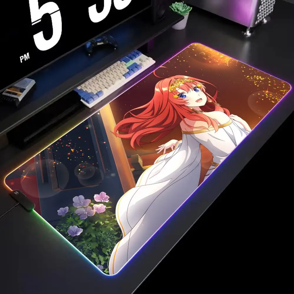 Nakano Itsuki Mouse Pad Gamer Rgb Desk Mat Back Light Led Mousepad Setup Gaming Accessories Deskmat Big Mousepad