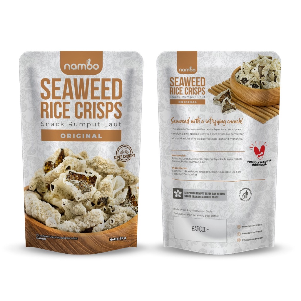 Snack rumput laut Nambo dibuat Homemade dengan bahan-bahan berkualitas dan diproduksi dengan higienis. Cocok dijadikan sebagai cemilan ataupun pendamping makanan kalian karena teksturnya yang renyah & gurih! ada berbagai macam varian rasa: