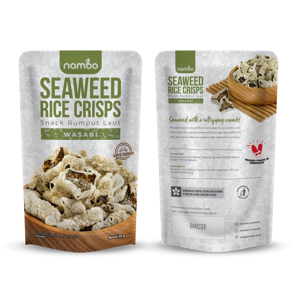 Komposisi Nambo : Rumput Laut, Kulit Beras, Tepung Tapioka, Minyak Nabati, Garam, Perisa Wasabi