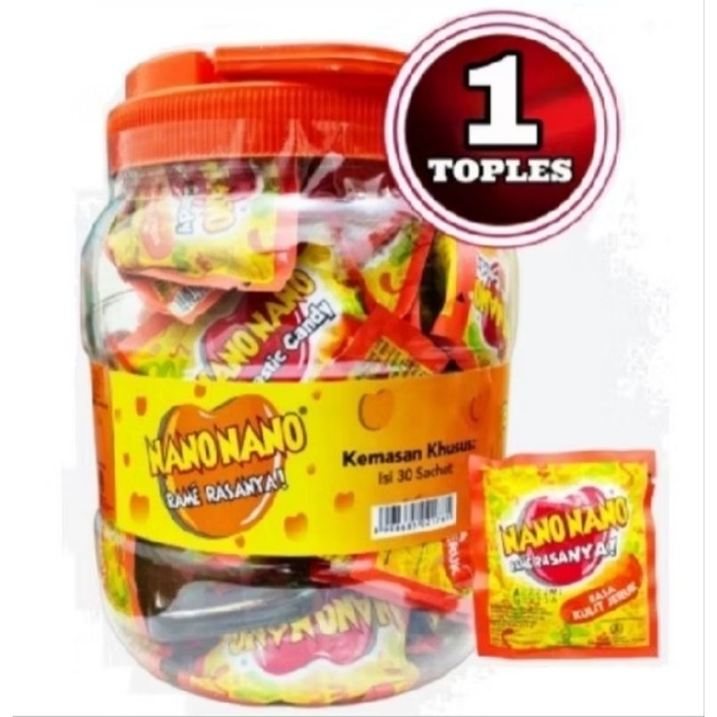 Nano Nano Permen Rasa Kulit Jeruk Toples Isi 30 Sachet
