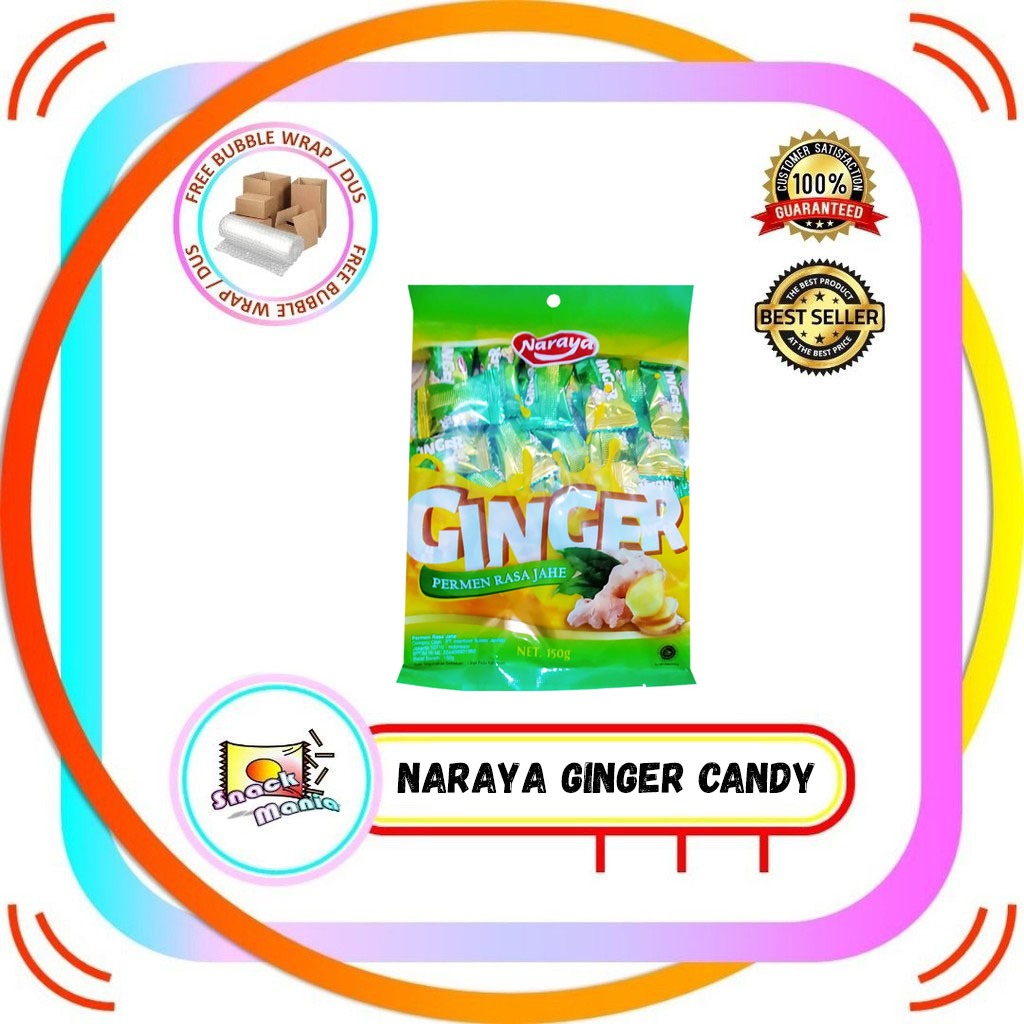Naraya Ginger Candy 150 gr merupakan permen dengan aroma khas jahe yang memiliki manfaat dalam memelihara kesehatan tubuh. Permen dengan kandungan jahe dapat memberikan rasa yang manis dan menyegarkan tubuh, selain itu dapat mengatasi mual terutama ketika mabuk kendaraan karena efek jahe yang hangat ternyata mampu mengatasi peradangan atau infeksi yang memicu timbulnya mual.Kandungan minyak di dalam jahe juga dapat memberikan rasa lega pada tenggorokan sehingga dapat membantu mencegah timbulnya flu dan batuk serta radang pada tenggorokan.