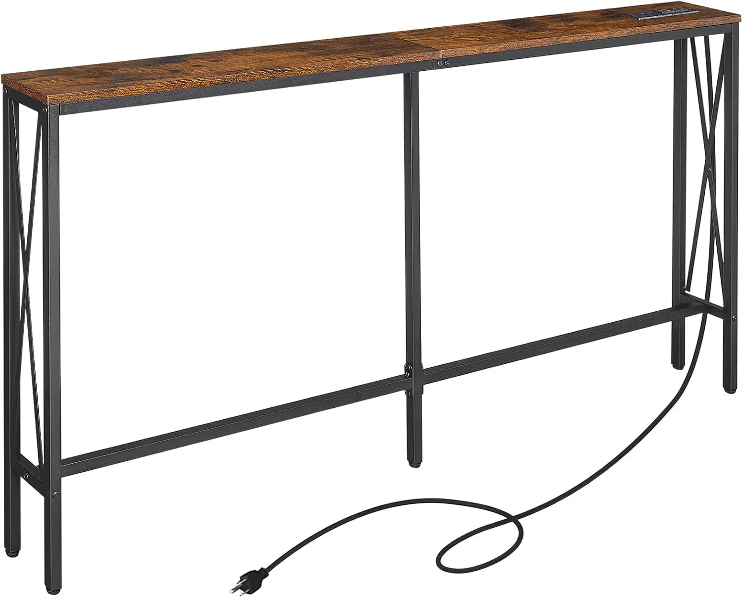 Narrow Console Sofa Table with Power Outlets, X-Frame Charge Station