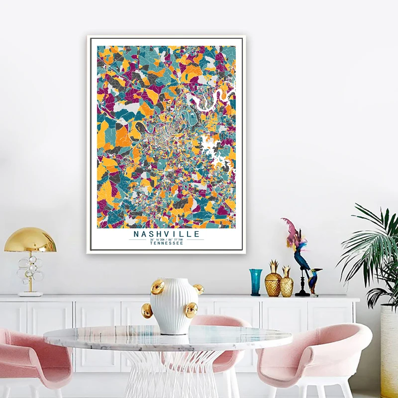 Nashville Теннесси, Америка, цвет карта городов мира, настенный художественный печатный плакат, картина, домашний декор