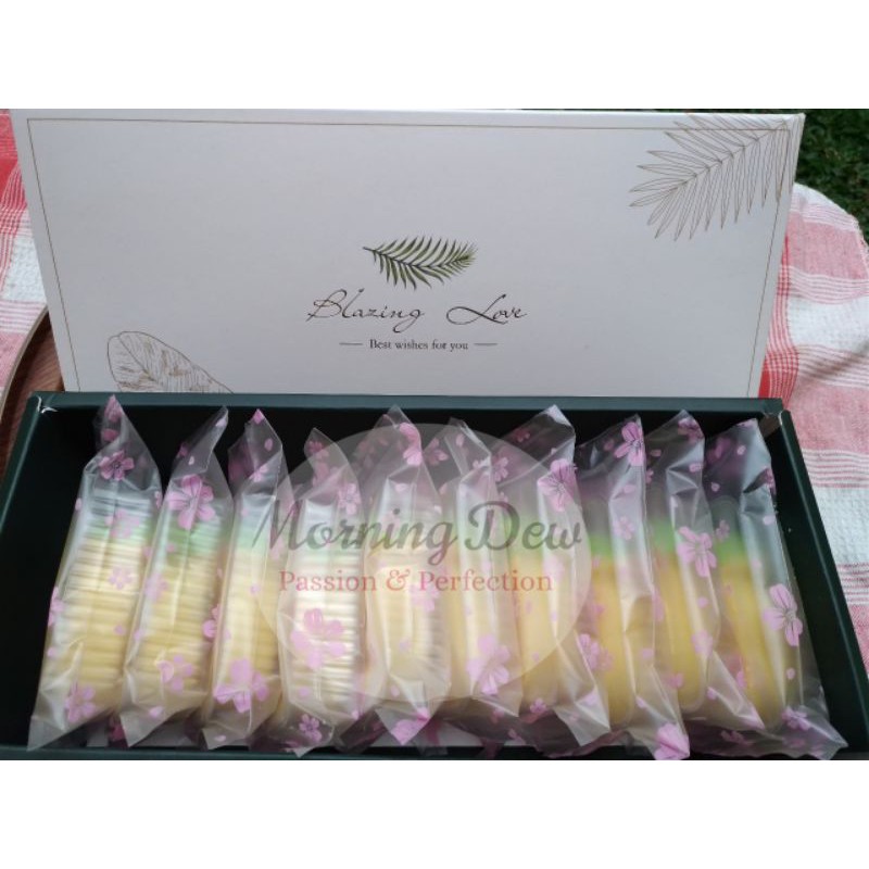 Nastar Taiwan dibuat dari bahan-bahan premium, tanpa pengawet. Butter berkualitas, keju parmesan, dan filling selai nanas asli homemade untuk kepuasan anda. Berat produk kurleb 300 gram, 1 kotak berisi 10 pack nastar taiwan. 1 kg muat 2 kotak + packing.