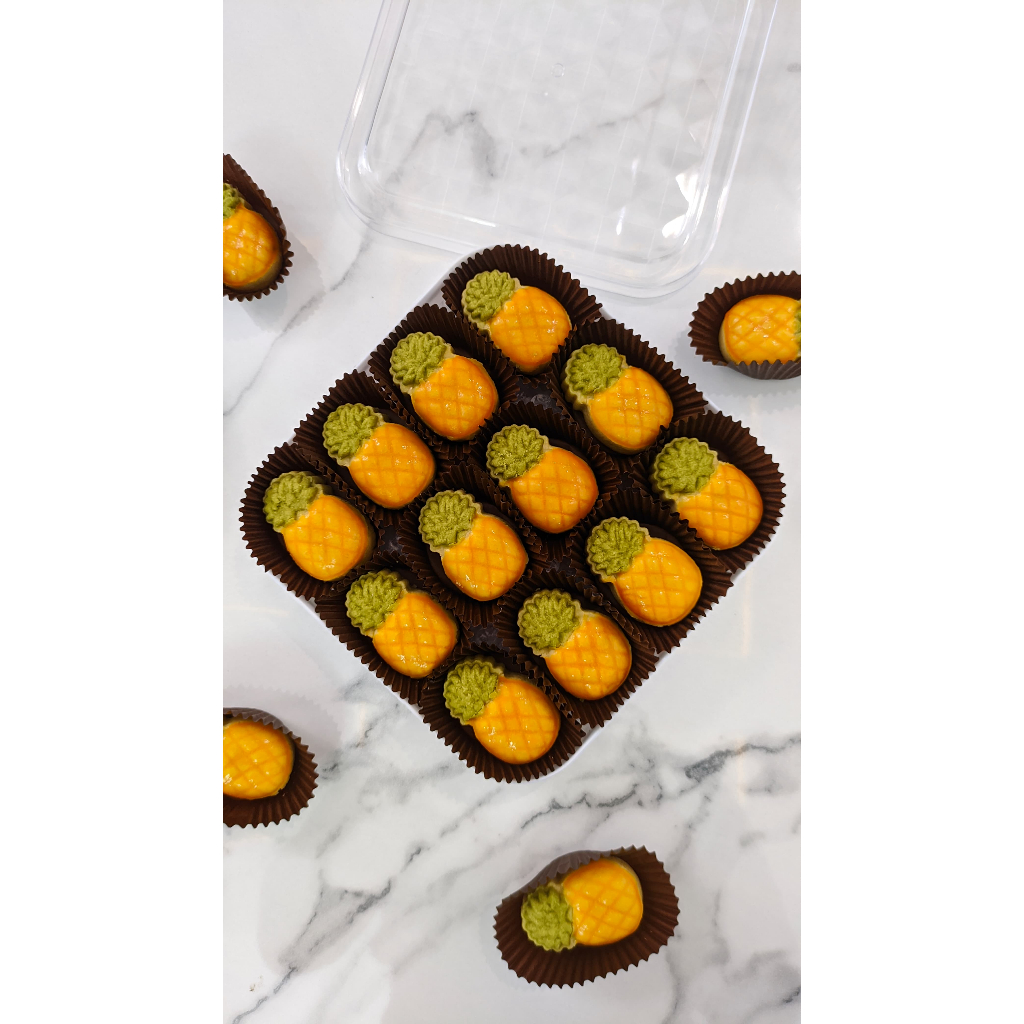 Menggunakan mentega Wijsman asli, teksturnya lumer dengan cita rasa gurih yang khas. Isian nanasnya dipilih dari buah berkualitas tinggi, menghadirkan keseimbangan sempurna antara manis dan segar. Warna hijau alami dari matcha powder asli diukir menjadi corak daun yang mempercantik tampilan, mempertegas esensi kealamian tanpa pewarna buatan.
