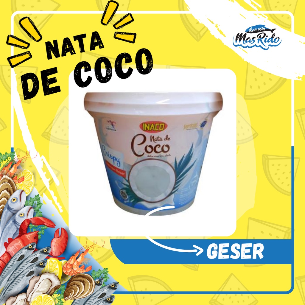 Nata De Coco Crispy potongan besar dapat di minum langsung atau di campur untuk minuman lain. Nata de coco adalah nata yang dibuat dengan bahan baku air kelapa. Cocok dihidangkan pada campuran sop buah maupun es campur.