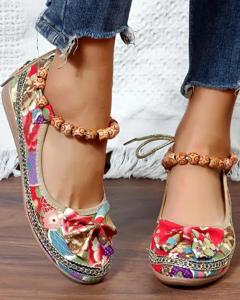 National Style Floral Pattern Embroidery Beaded Slip-on, Red