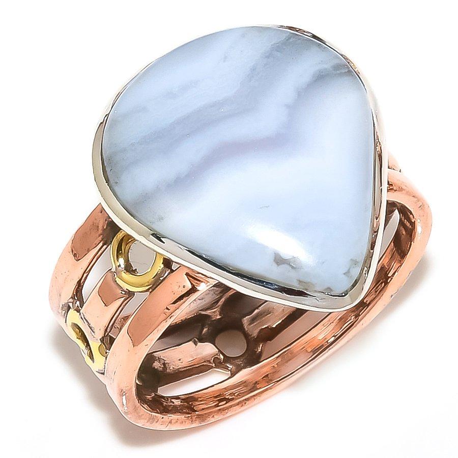 Natural Blue Lace Agate Two Tone 925 Sterling Silver Jewelry Ring Size 10.5 h4Y84