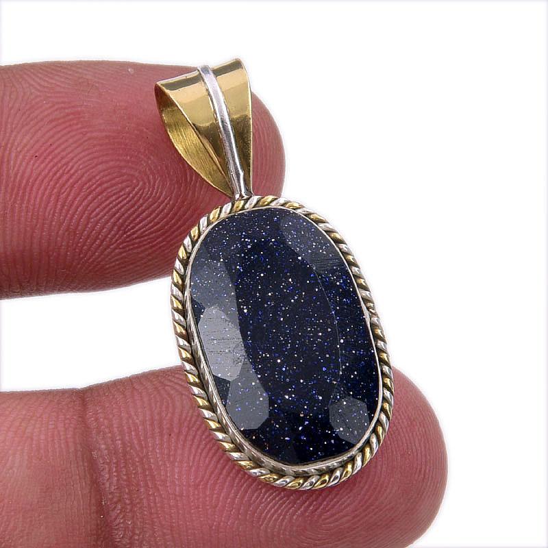 Natural Blue Sunstone 925 Solid Sterling Silver Gift TwoTone Pendant 1.50 c5L77