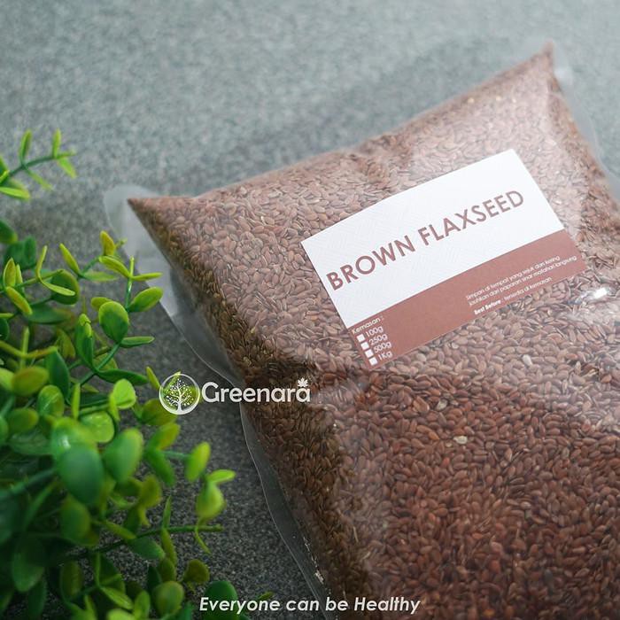 Brown Flaxseed adalah sumber makanan alami yang mengandung asam lemak Omega 3 tertinggi di seluruh jenis makanan yang ada di muka bumi ini (15gr = 3gr omega 3), kaya akan serat dan mengandung protein yang baik. Flaxseed mengandung estrogen yang baik yang berfungsi untuk mencegah perkembangan sel KANKER PAYUDARA.
