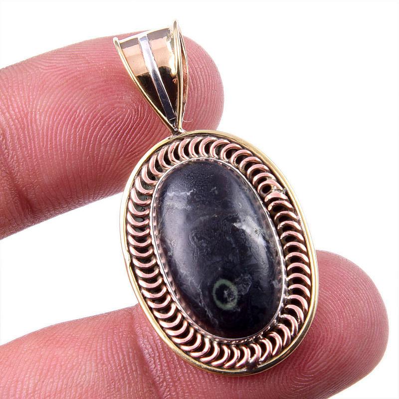 Natural Green Pietersite Gemstone 925 Solid Silver Two Tone Pendant 1.50 K0V17