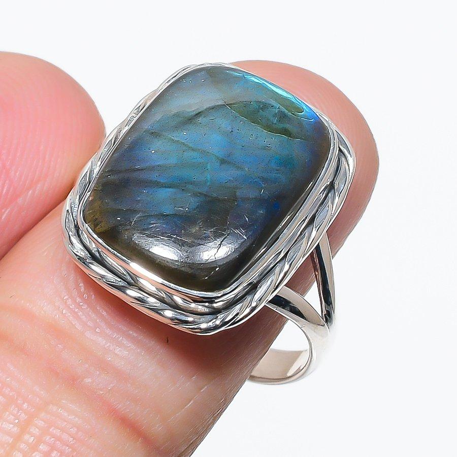 Natural Labradorite Gemstone Handmade 925 Solid Silver Jewelry Ring Size 10 P0n12