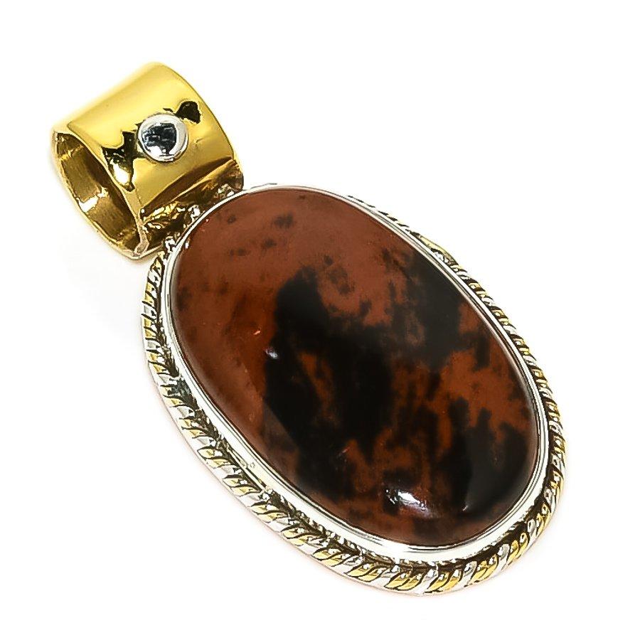 Natural Mahogany Obsidian Two Tone 925 Solid Sterling Silver Pendant 1.25 G7F90