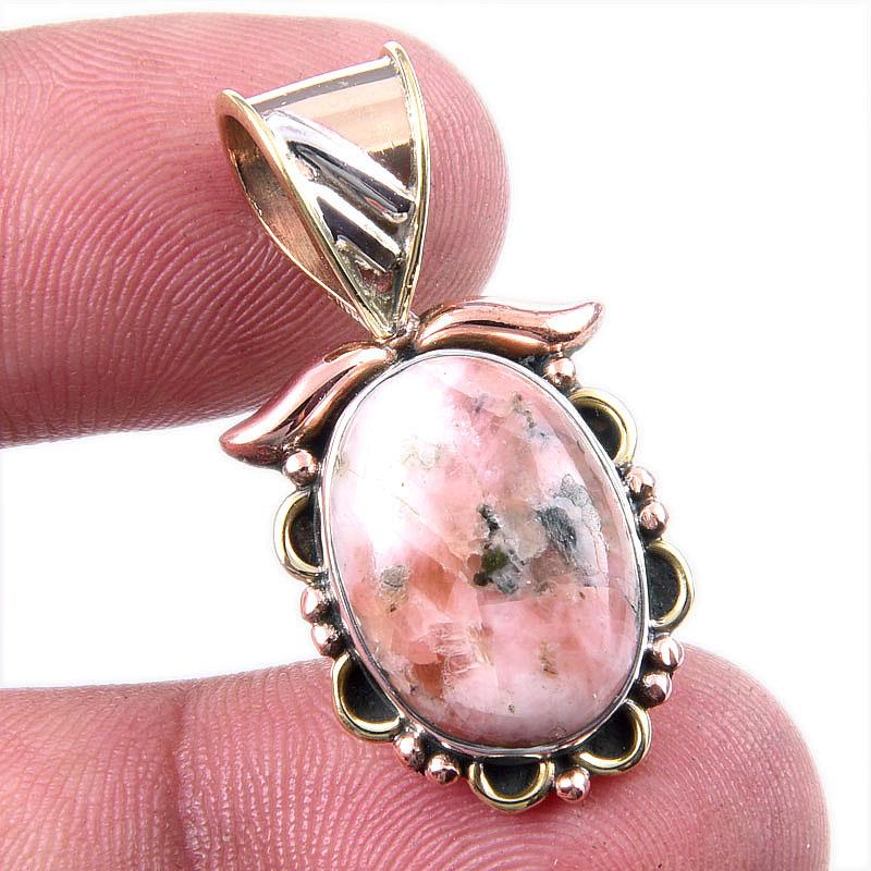 Natural Rhodonite Gemstone 925 Solid Sterling Silver Two Tone Pendant 1.25 K2O54