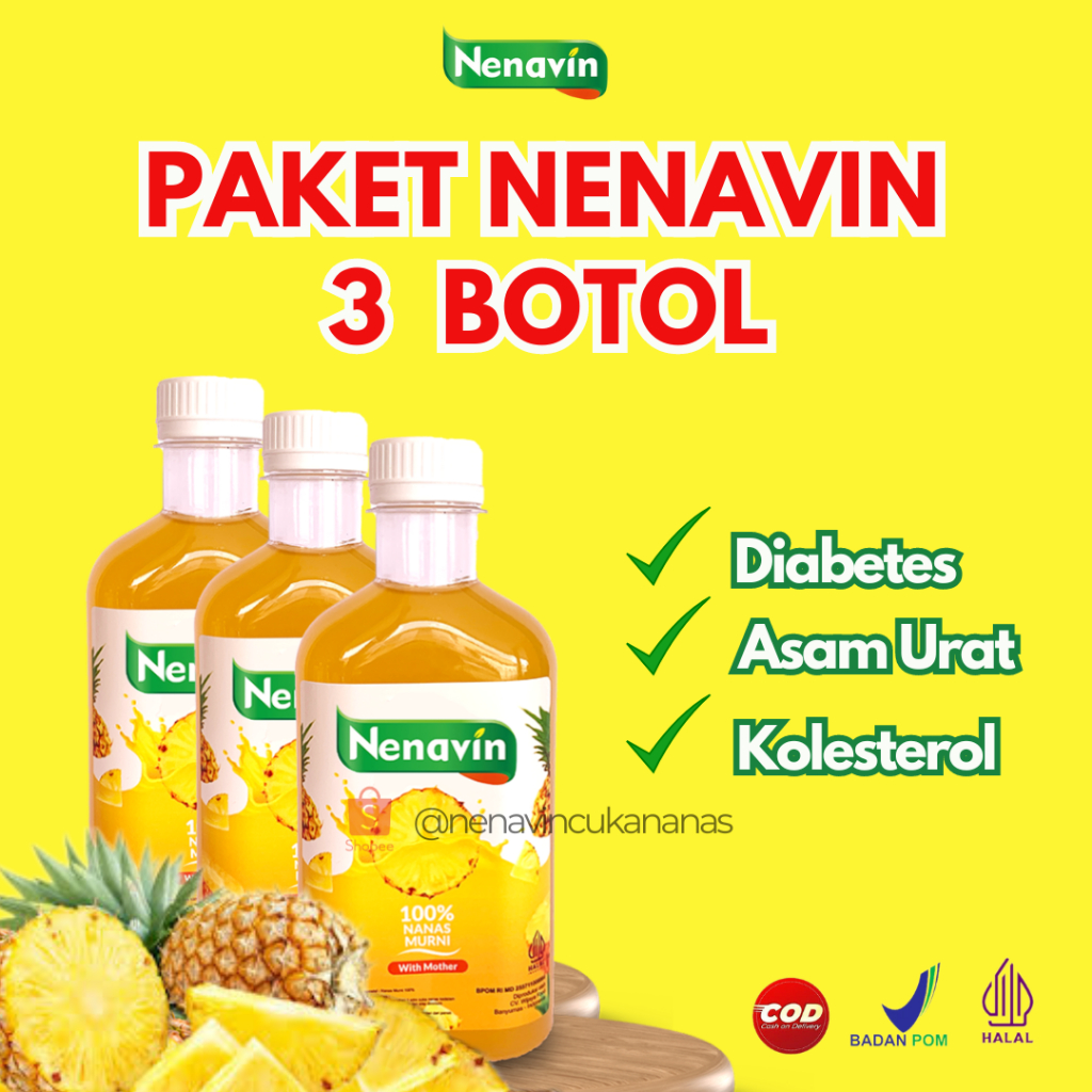Nenavin dengan bahan utama Buah Nanas mengandung enzim Bromelain yang sangat baik untuk kesehatan.
