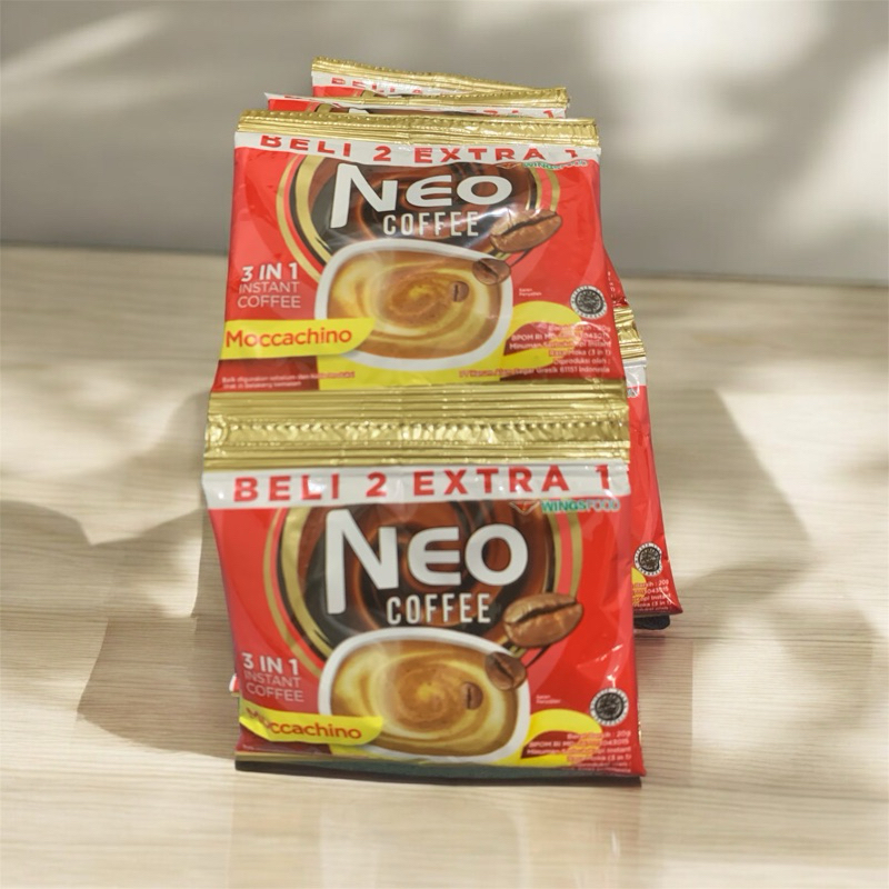 Neo Coffee adalah kopi bubuk instan dalam kemasan sachet yang merupakan perpaduan dari Kopi, Coklat dan Susu yang pas dan mantap di lidah. Perpaduan biji kopi ROBUSTA dan ARABIKA pilihan yang diolah dengan sempurna menghasilkan aroma yang jauh lebih harum dan cita rasa yang lebih kompleks.